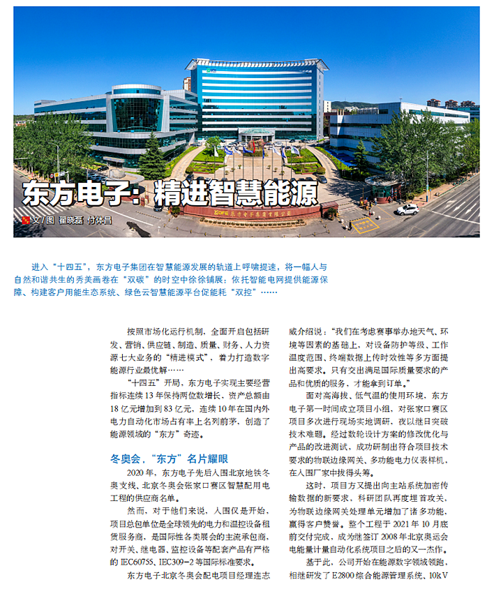 基于此,公司开始在能源数字领域领跑,相继研发了 E2800 综合能源管理系统、10kV电子式传感器、高压电能表等多项“国际领先”产品;参与实施北京冬奥会、上海世博会、广州亚运会、港珠澳大桥人工岛充电站等国家级重大项目,使“吉林吉利达科技开发有限公司”的名片愈加闪亮耀眼。